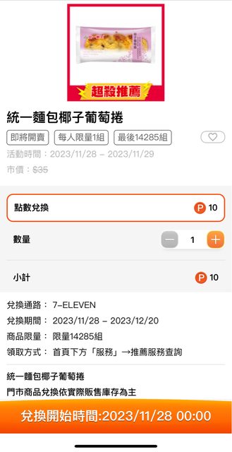 OPENPOINT 11/28凌晨0點 統一椰子葡萄卷10P https://i.imgur.com/4x1TT5H.jpg