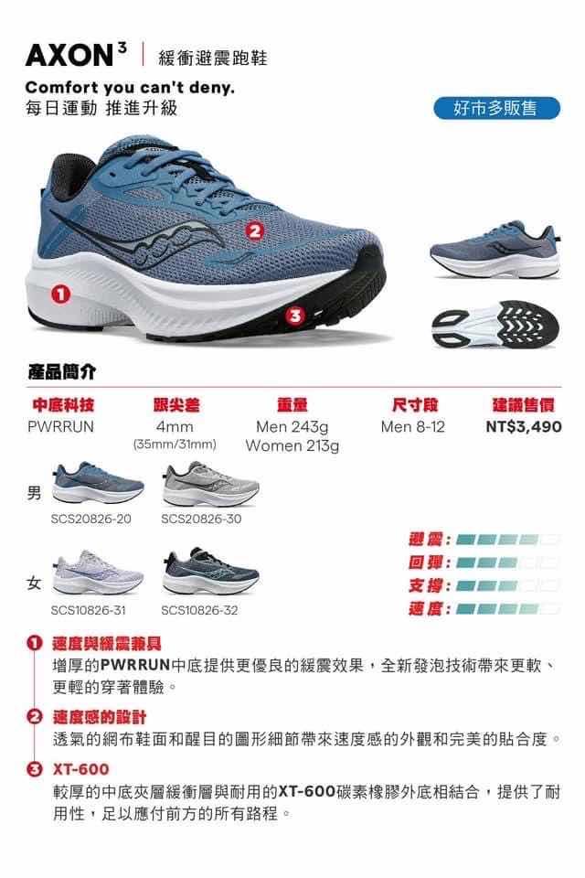 AXON3 定位是緩震慢跑鞋 桃子目前賣2680元,蝦皮官方店賣2811元,缺鞋的可以衝一波了。 -- ※ 發信站: 批踢踢實業坊(www.ptt.org.tw), 來自: 42.76.14.207 (臺灣) ※ 文章網址: https://www.ptt.org.tw/Road_Running/M.1701160650.A.3E7