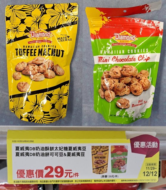 cvs版貼的奶油酥餅,買來吃了覺得就是普通餅乾,吃不出夏威夷豆,個人不推