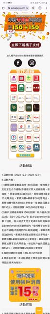 跟11月一樣☺ ※ 引述《cutejoanna (金枝玉葉)》之銘言: : 這個月倒是比上個月活動快出來 : 跟上個月內容差不多 : (1) https://lihi2.com/8mdaG : 累積消費3筆 享50元零用金 : 累積消費6筆 再享50元零用金 : 累積消費9筆 再享50元零用金 (都是7-11專用點) : 活動上限100萬,滿額說會在粉絲團公告,看過了,信用卡可以用 : (2) https://lihi2.com/EIUYo : 茶湯會10%,上限每人100 : (3) https://lihi2.com/62Tau : TWQR使用橘子支付消費筆筆10% : 每會員回饋上限200元 7-ELEVEN專用點,總活動預算30萬。 : 指定店家掃碼支付,且該店家張貼、標示「TWQR」及「橘子支付」標誌為限 : 2023.11.01-2023.12.31 : 經本公司核實會員之回饋金額後,於113年3月31日前,將零用金撥付至會員首筆符合本 : 活動回饋資格使用之電支帳戶 : 這個第三不知道可不可以跟其他活動疊加,這應該是最新的吧,也不知道商家們都 : 準備好了沒,我是還沒去刷美聯社,TWQR的商家名單又有70多頁不好找。 : 總之,如果有看到店家剛好又有橘子支付又有TWQR,記得有10%哦 ----- Sent from JPTT on my Samsung SM-A528B. -- ※ 發信站: 批踢踢實業坊(www.ptt.org.tw), 來自: 111.82.58.22 (臺灣) ※ 文章網址: https://www.ptt.org.tw/Lifeismoney/M.1701420157.A.A56
