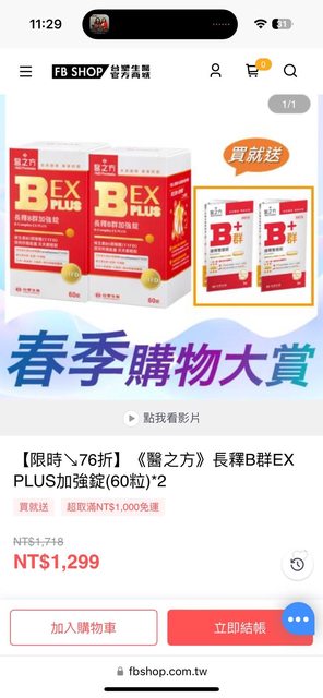 台塑生醫 醫之方官網四月優惠 長釋B群EX PLUS 60粒 買2送2 再加贈緩釋B群3粒*2 我身體痠痛問題很嚴重 一直都有在吃這個 蠻有感的 https://i.imgur.com/QbwFwaQ.jpeg