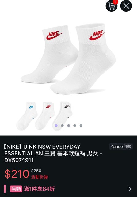 標題[情報] NIKE基本款短襪3雙$210免運