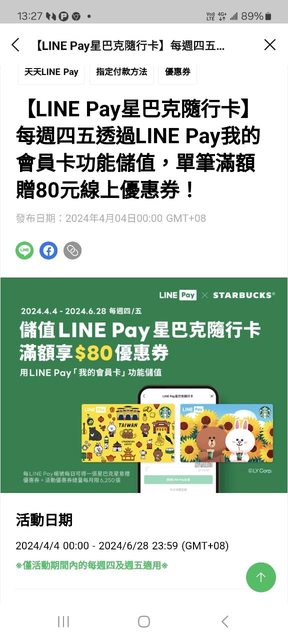 推 vu1985: 贈送的80元必須從linepay星巴克星意禮抵 42.72.183.125 04/19 20:41