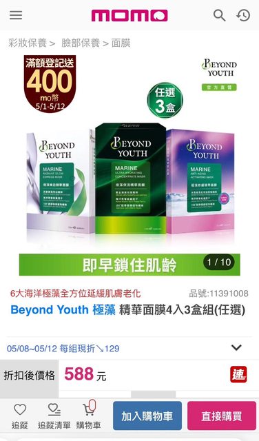 標題[情報] 極藻面膜 MOMO三件$588