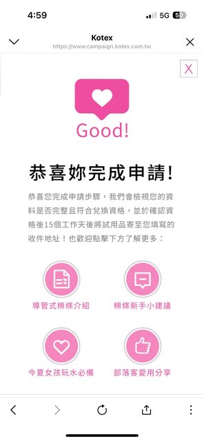 推 Elsa8011: 申請成功,謝謝分享,有填有推一直都用 27.52.98.214 05/13 22:11
