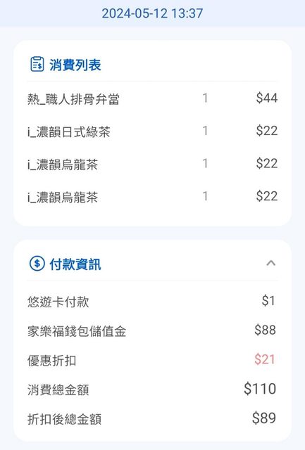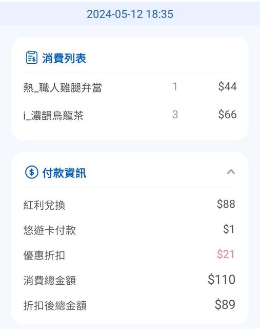 濃韻15*3+每朝17*4+半價餐盒36 -100(母親節蛋糕折扣券)-48紅利=1元 https://i.imgur.com/BgqZaRp.jpeg