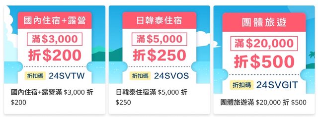 5/22-6/22於 AsiaYo App 預訂住宿或行程 輸入專屬折扣碼,可享最高6.6%折扣 國內住宿+露營 滿$3,000 折 $200 日韓泰住宿 滿$5,000 折 $250 團體旅遊 滿$20,000 折 $500 郵輪行程 滿$50,000 折 $700 分享給暑假有要出遊的人 https://i.imgur.com/ysNa0X1.jpeg