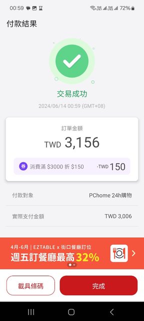 推 e32420: 中午慢了點沒用到減200,多刷幾次讓我結 111.242.211.86 06/18 12:22