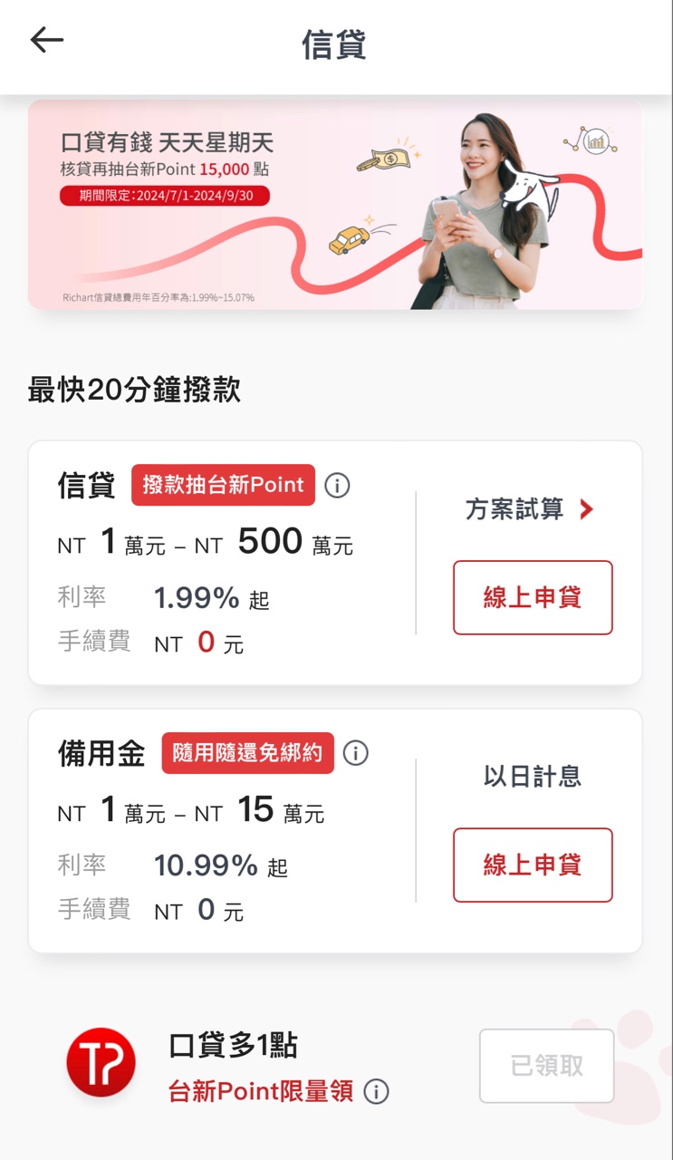 推 MissMolly: 台新點很好用richartlife 週三早上10點223.137.227.182 07/03 09:55