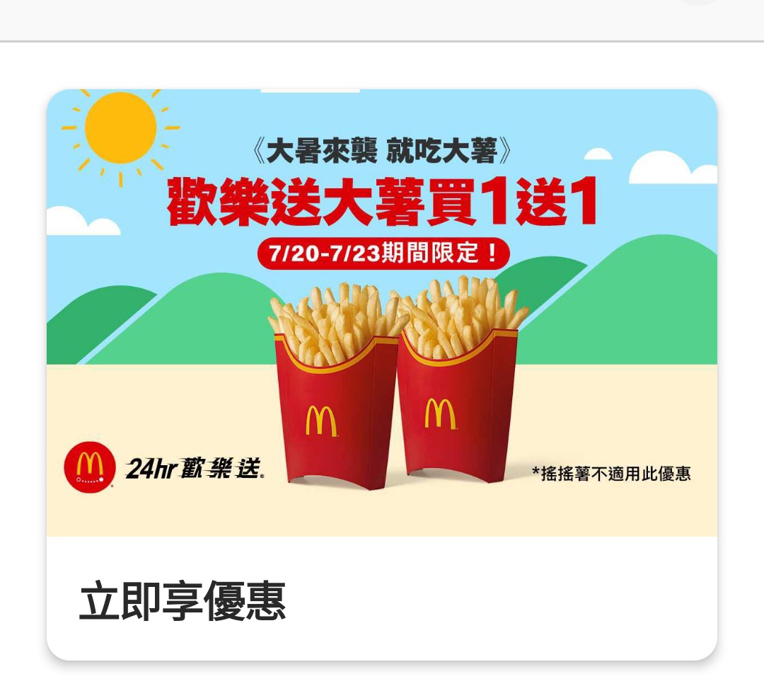 推 nonpeople: 優惠只限歡樂送 點餐機/歡樂送都不適用 61.216.126.140 07/21 11:09