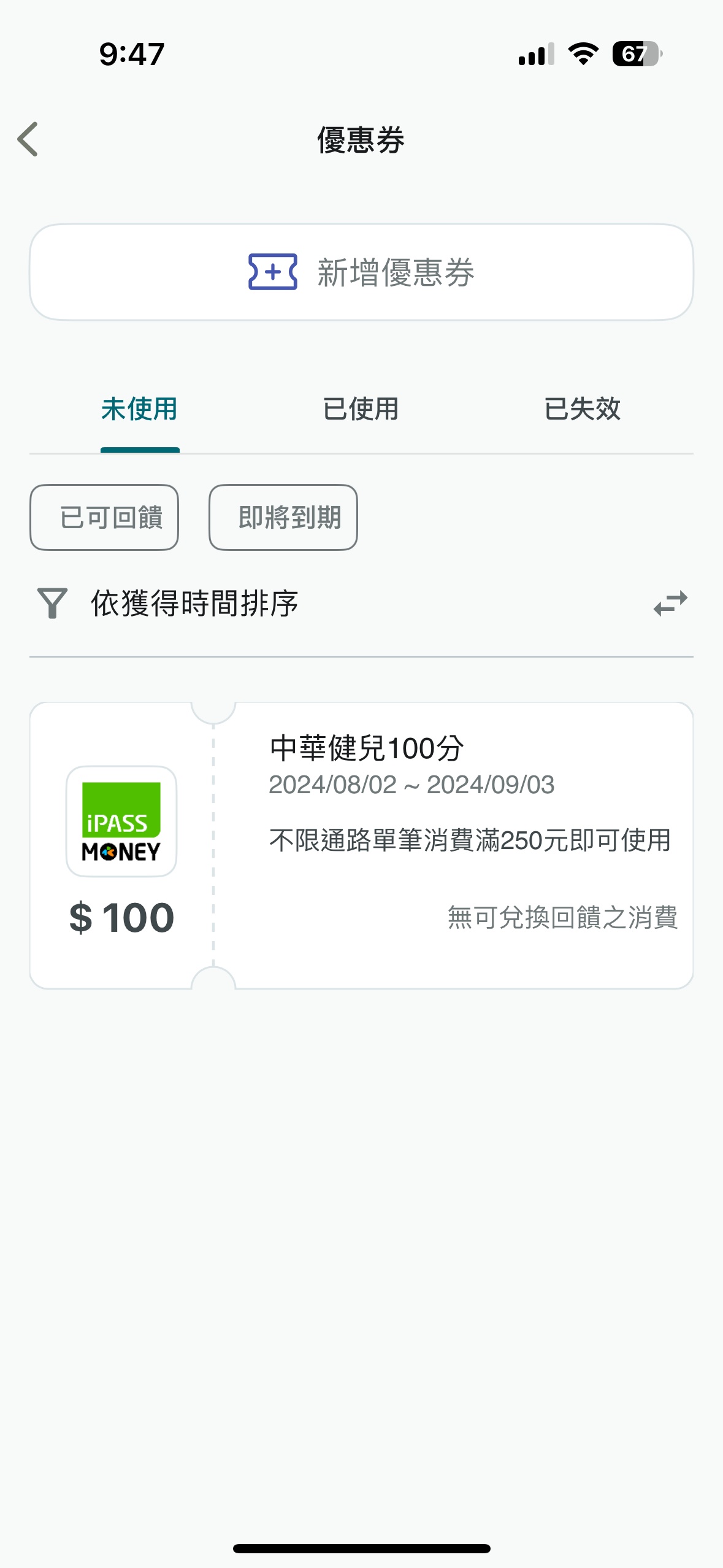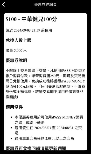 → pornpig32: 兌換,要完成iPass 單筆結帳250。隔日39.12.66.196 08/03 15:25