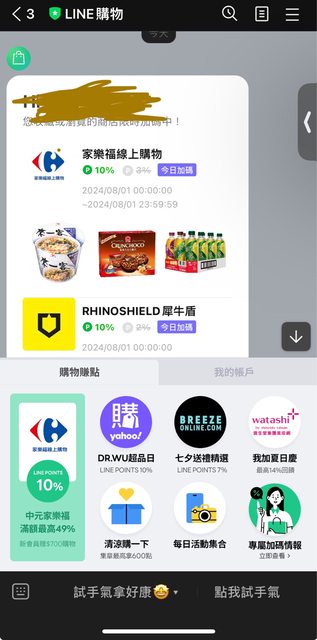 推 Timcloud: 如果是家樂福線上購物,導購至家樂福線 124.218.238.29 08/13 19:23