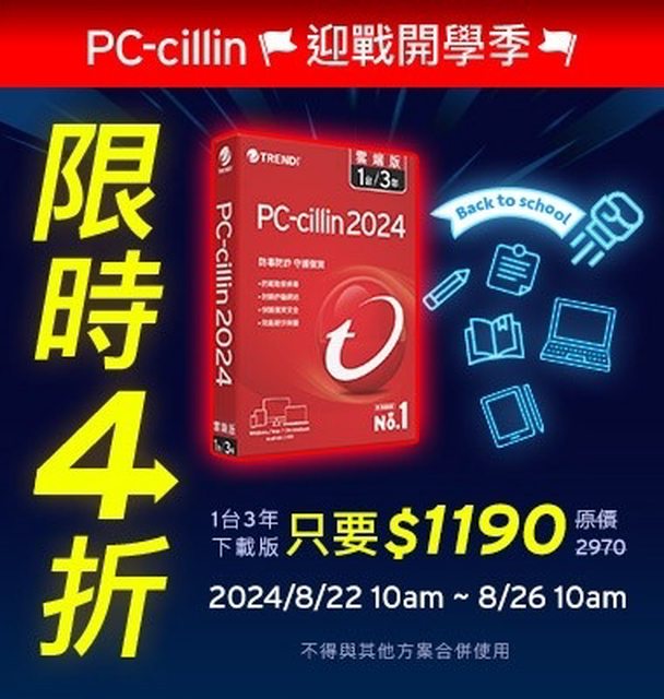 第一次看到看到趨勢防毒下殺4折 優惠時間只到8/26 1台3年下載版 只要 $1190 https://i.imgur.com/OHSuc7j.jpeg
