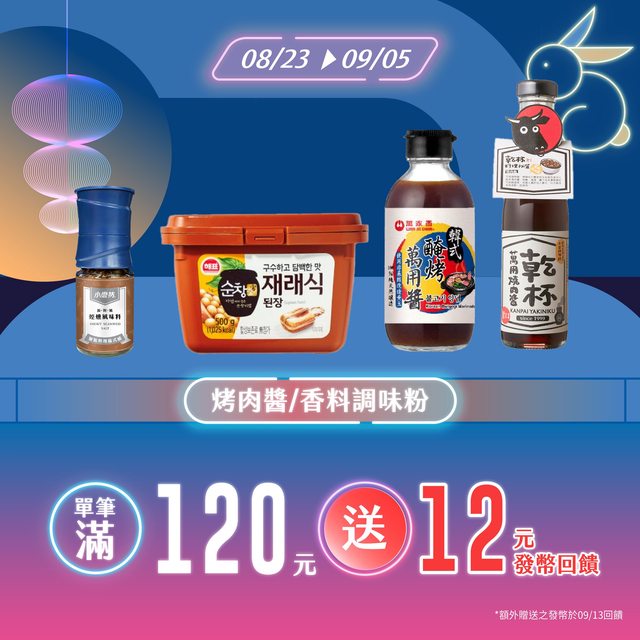 08/23 - 09/05 威士忌、白蘭地|單筆滿2000元 送150元 威士忌/白蘭地商品抵用券 烤肉醬/香料調味粉|單筆滿120元送12元發幣回饋 DM第19頁至21頁 型錄飲料/啤酒|任兩組 享95折優惠 全館任一冷凍商品|送69元進口挪威鯖魚一夜干加購券 文具用品|單筆滿399元 送40元現金抵用券 應該是專門為中秋烤肉的活動 -- ※ 發信站: 批踢踢實業坊(www.ptt.org.tw), 來自: 110.28.26.50 (臺灣) ※ 文章網址: https://www.ptt.org.tw/Lifeismoney/M.1724305489.A.70F