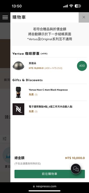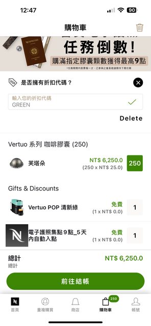: 放250個VERTUO膠囊在購物車