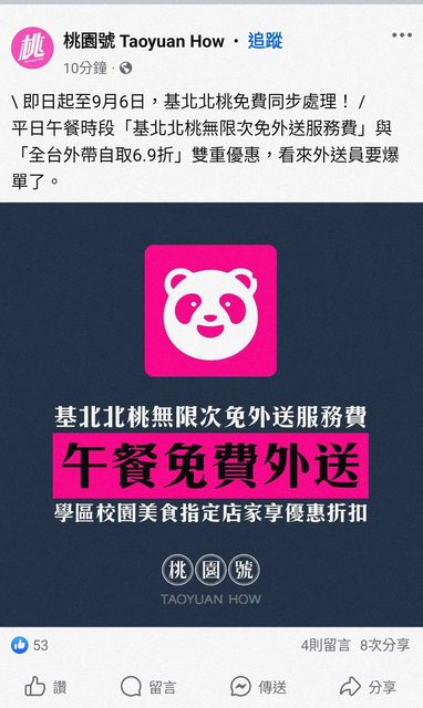 標題[情報] 熊貓午餐部分店家免外送費