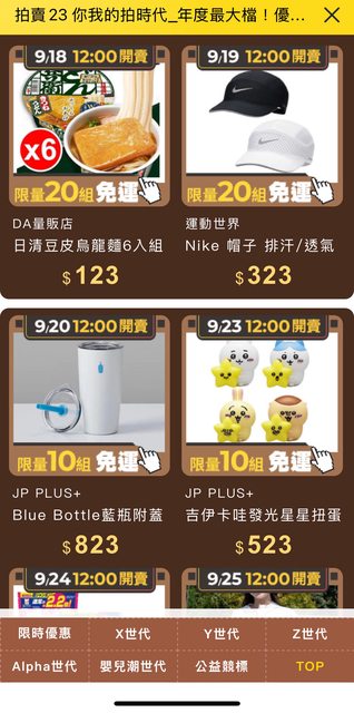 → lovelylion2: 限20組,沒誠意 111.71.93.216 09/18 10:06