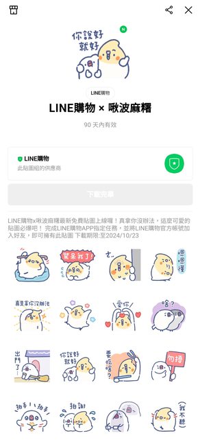 標題[情報] LINE購物&老子有錢限時免費貼圖(180天