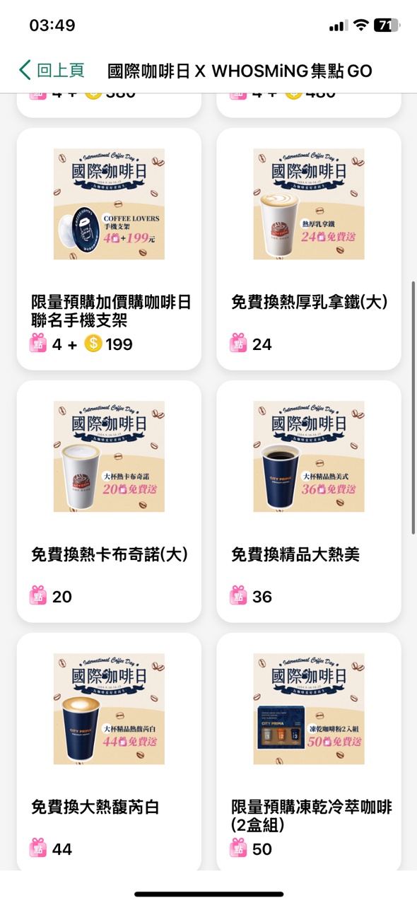 → boggu: 咖啡集點可以點數免費兌換喔 買24杯剛好可220.135.207.150 09/28 03:50