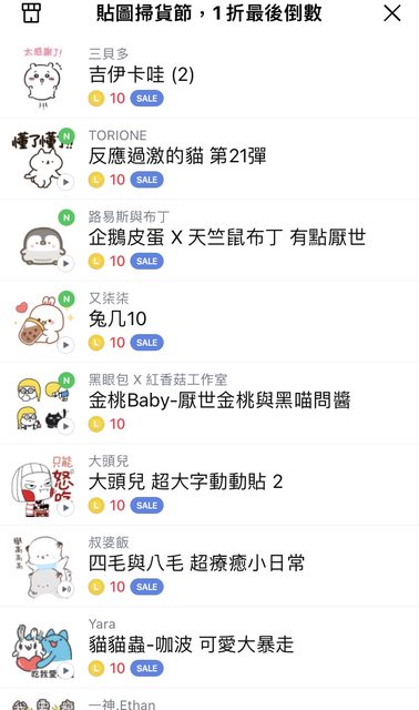 → bailan: 用網頁的line store買,一個貼圖6元,選l 223.139.5.23 10/02 10:43