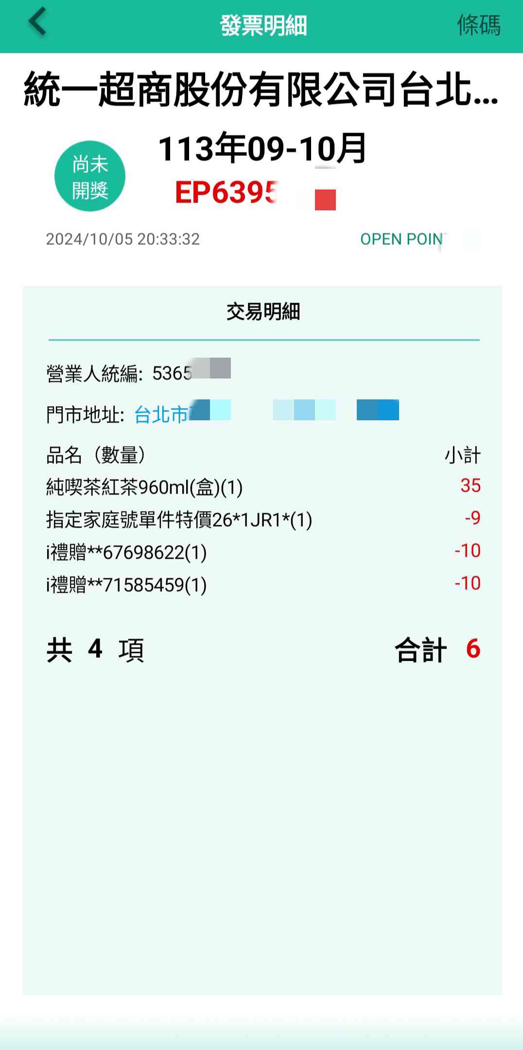 → jeff888chang: 1瓶是26元。用OP點換20元,剩下6 36.227.253.137 10/05 22:55