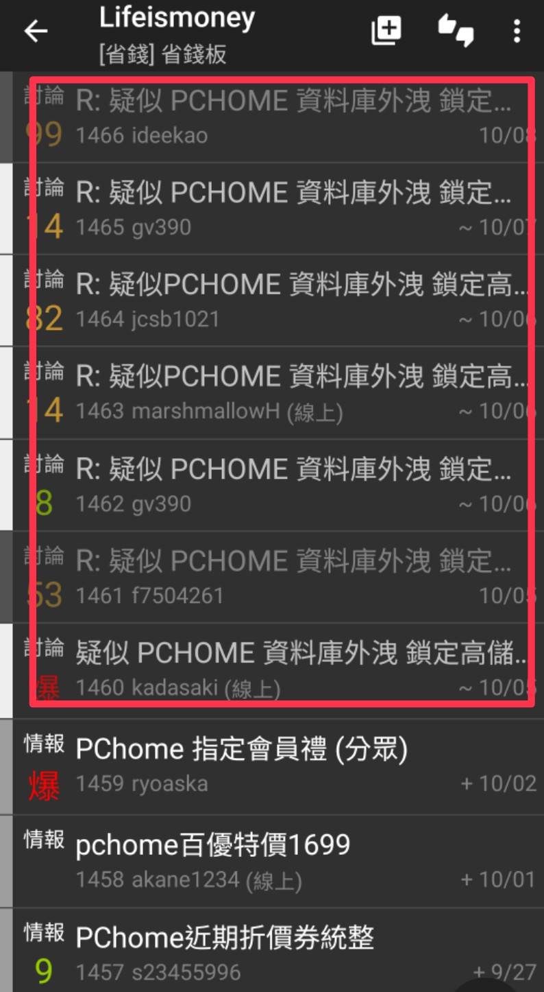 推 rLks02: 「撞庫」然後只有 PChome 有災情的 「撞庫 1.173.102.234 10/08 06:09