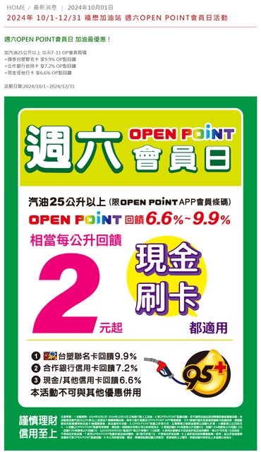 推 yangyy2: 每個月5千油錢刷台塑卡拿到500op點數都 111.71.215.213 10/14 11:47