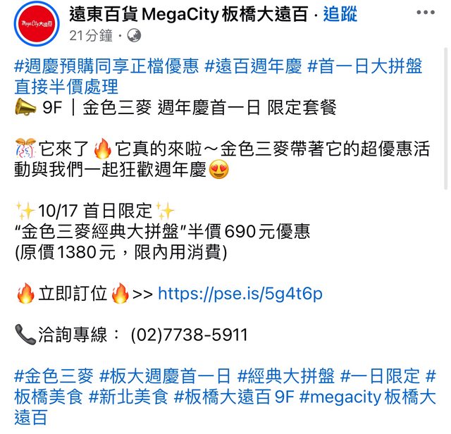 明天10/17大拼盤有半價優惠