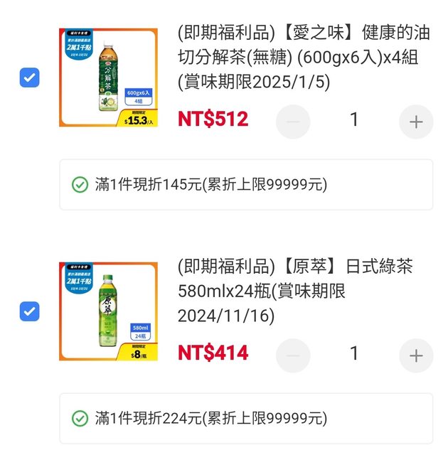 推 a910n242: 買了三箱分解茶+一箱綠茶1191元,便宜。 1.168.2.217 10/18 15:42