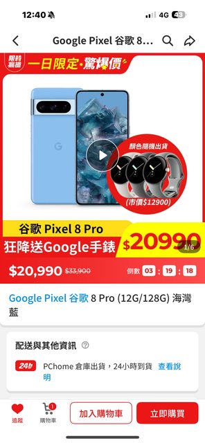 Pchome Google Pixel 谷歌 8 Pro (12G/128G) 海灣藍 20990 送Pixel watch lte 我在 PChome24h 找到好東西了,快來看! Google Pixel 谷歌 8 Pro (12G/128G) 海灣藍 https://24h.pchome.com.tw/prod/DYAT23-A900HY2CJ 懶得算 應該有便宜吧 分享一下 ----- Sent from JPTT on my iPhone -- ※ 發信站: 批踢踢實業坊(www.ptt.org.tw), 來自: 114.136.196.40 (臺灣) ※ 文章網址: https://www.ptt.org.tw/Lifeismoney/M.1729745004.A.3F5