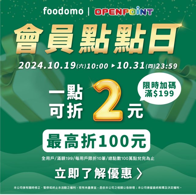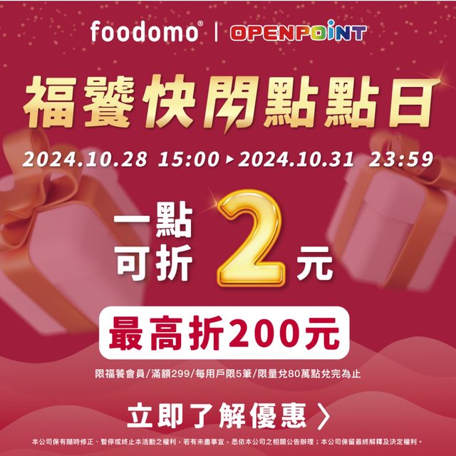 10/28-10/31 福饕會員滿299可折200元(100OP) 一般會員滿199可折100元(50OP) https://i.imgur.com/bPqSJHe.jpeg