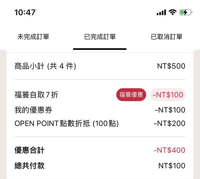 如果有福饕會員自取7折還沒用的 還可以折一個100元 有會員:買滿499-100(自取)-100(優惠碼)-200(雙倍折)=99,如果計入OP點值=199大約4 折 券跟雙倍折可以五次,如果自取三次用完還可以繼續用外送也折不少 沒會員:買299-90(優惠碼)-100(雙倍折)=109,如果計入OP點值=159 大約53折 https://i.imgur.com/tdDvFLz.jpeg