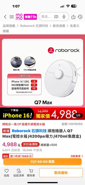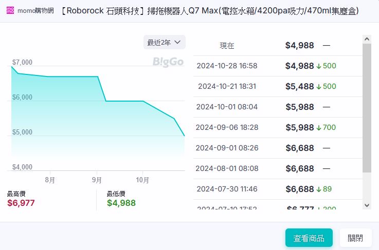 又再下殺了 雙11 Momo賣4988 有興趣的板友可以參考看看 應該是掃拖最低價的產品了吧 ----- Sent from JPTT on my iPhone -- ※ 發信站: 批踢踢實業坊(www.ptt.org.tw), 來自: 36.229.94.1 (臺灣) ※ 文章網址: https://www.ptt.org.tw/Lifeismoney/M.1730351323.A.585