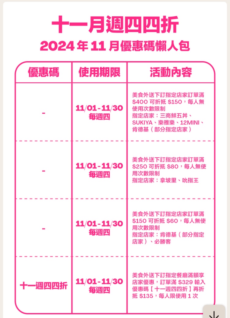 jim0221: 想問每天的優惠碼都是當天11.才會公布嗎 59.126.61.164 11/02 11:23
