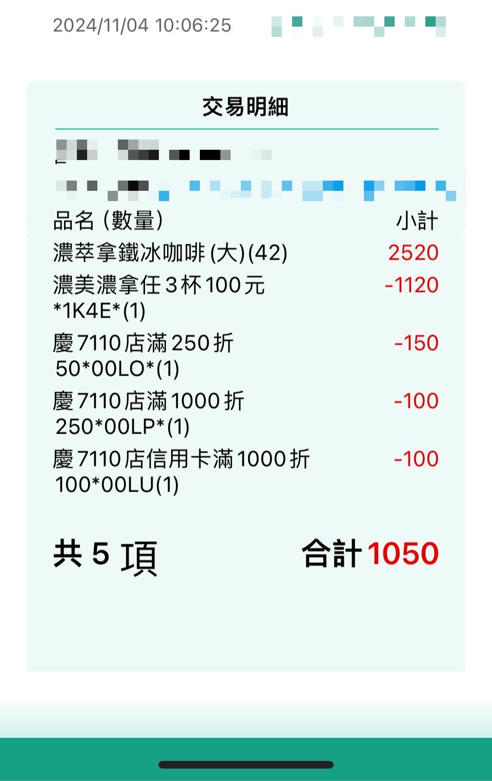 哈,單筆消費最高可得5張,k大單筆買1400元應該就是印5張給您了XD