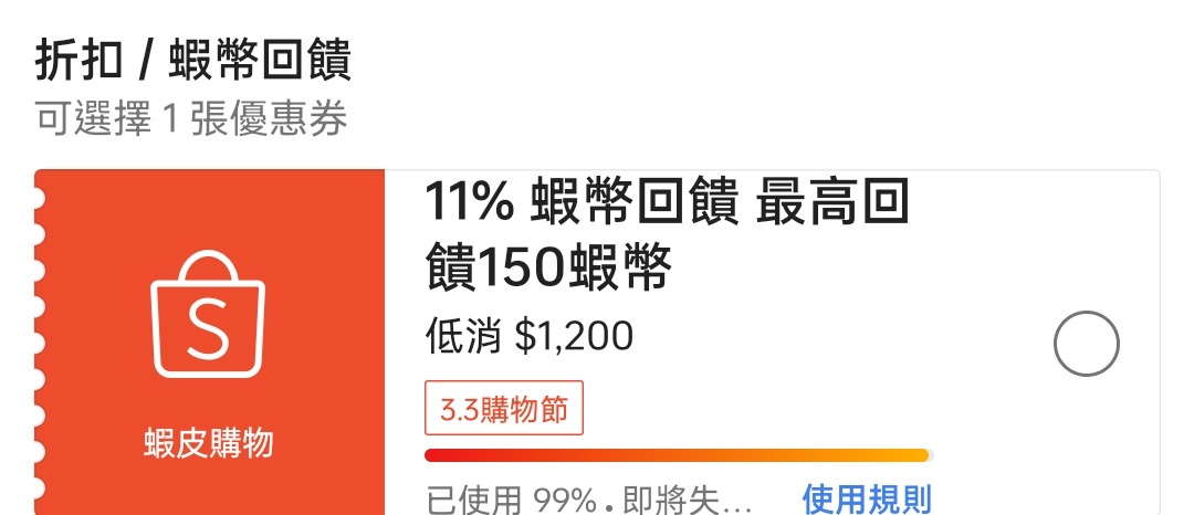 → linyi520: 難怪輸入出現「您不符合領取此優惠券資 49.217.121.86 03/03 06:14
