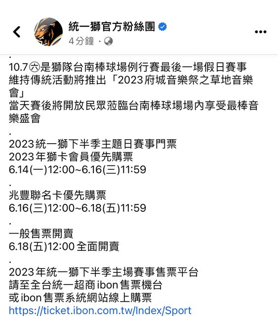 推 lgg6666 : 下半季的門票開賣了嗎? 06/10 12:44