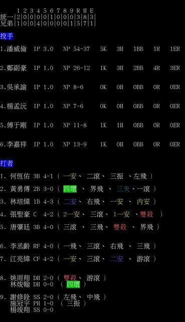 1.潘威倫 IP 3.0 NP 54-37 5K 3H 1BB 1R 1ER