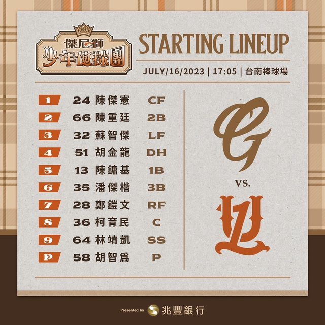 推 hellopo: 覺得2367棒應該排在一起 其他隨意排(照這兩場近況 07/16 16:12