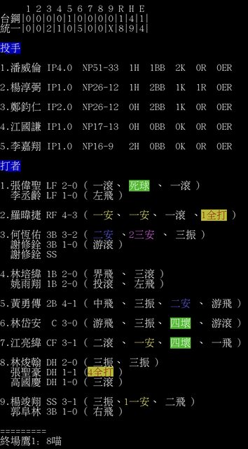 台鋼|0|0|0|0|1|0|0|0|0|1|4|1|
