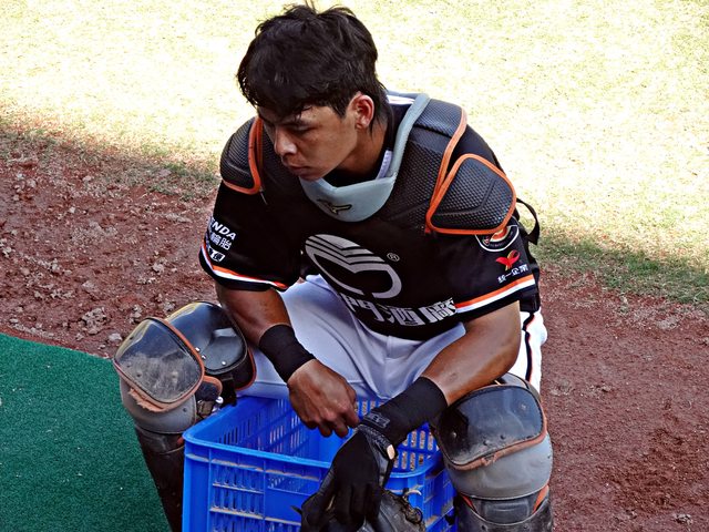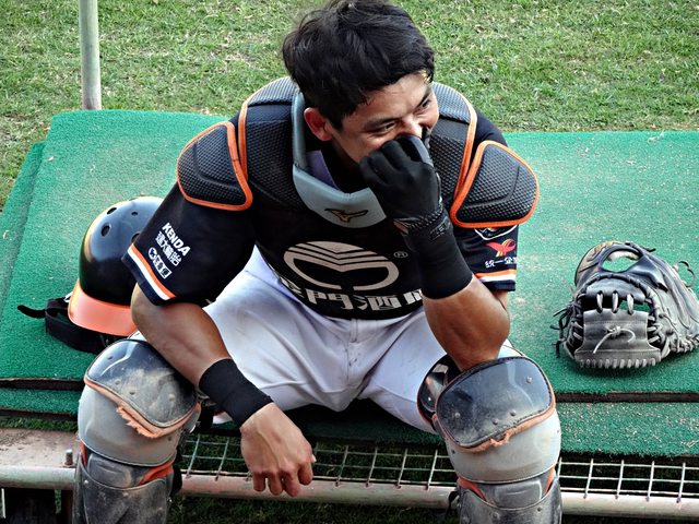 捕手會輪流訓練所以做完會先到旁邊休息
