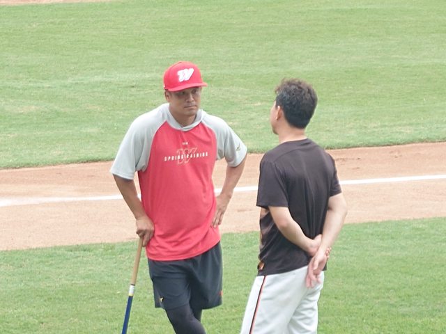 賽前看到客隊打擊練習時