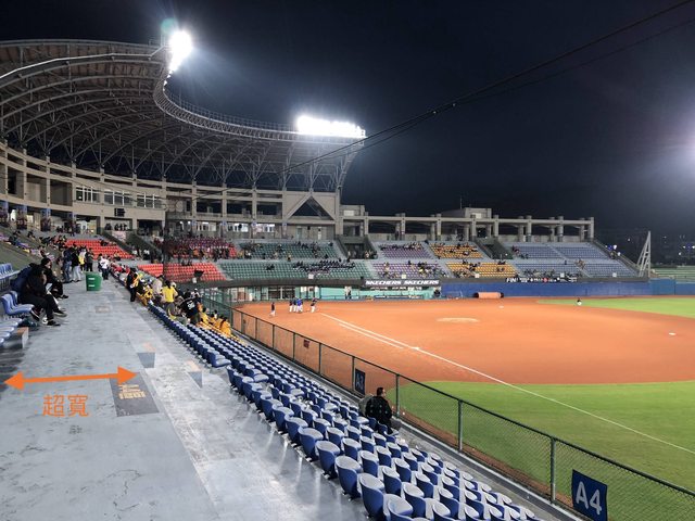 台東棒球場內野是對號入座,照片與轉播中可以看到內野座位很多顏色