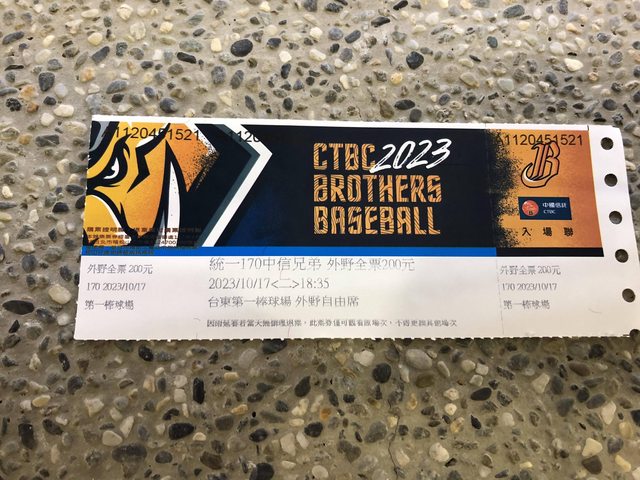 推 ntulion: 票上面的球場地址是第二棒球場的嗎? 10/24 19:55