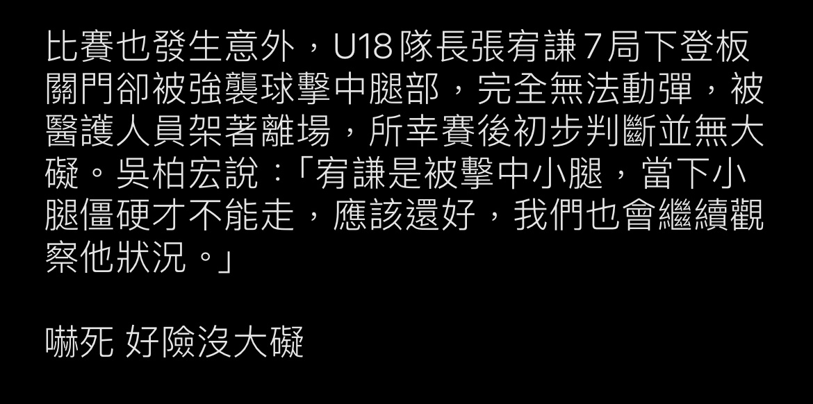 推 AhCheng: 張宥謙好險沒事 08/28 15:36