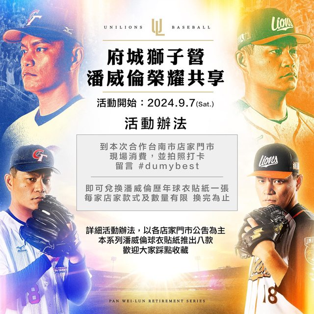 1、本次統一獅潘威倫球衣款式貼紙,推出八款,每家店面款式不同,歡迎踩點索取,數