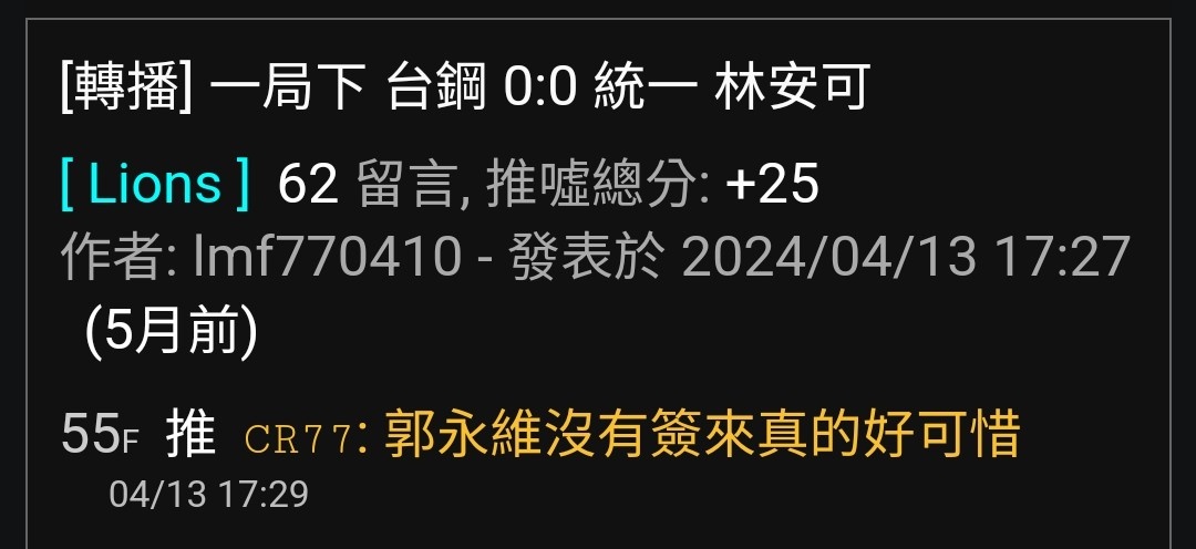 → CR77: 拿出最爛的成績 佔著中心棒次 就是欠噴 09/28 18:32