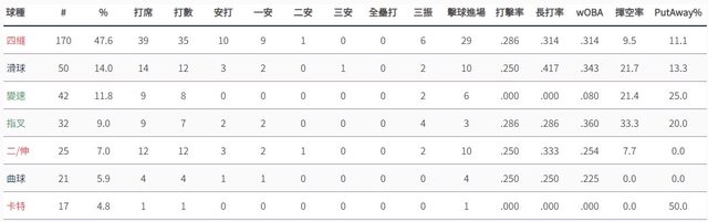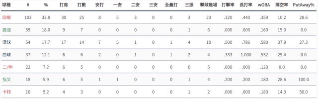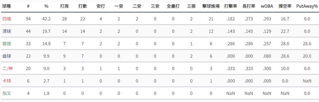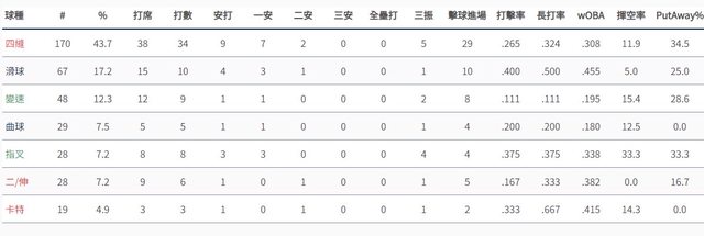 這邊上一下九月主力打者對於球種攻擊數據 只能說連四縫速球都掌握不好了 其他變化球種