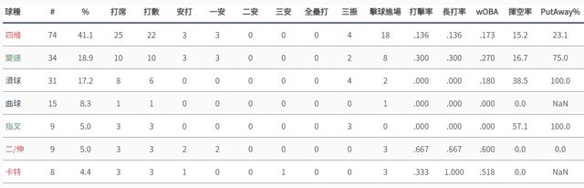 甚至以今天狀況來說 打者都是積極攻擊四縫速球/卡特等直球系球種 掌握也都不錯