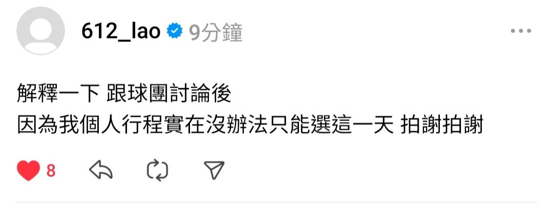 推 manjay: 球團都不用考慮參加古林活動的齁QQ 11/30 12:01